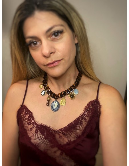 Σκουλαρίκια από γυάλινες χάντρες ραμμένες χειροποίητα πάνω σε δερμάτινη επένδυση και επιχρυσωμένο ορείχαλκο. Made in New DelhiΚωδικός σχεδιαστή: Blue