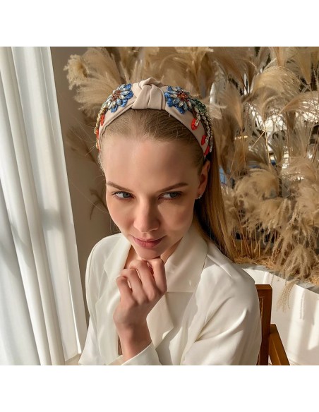 Η κορδέλα μαλλιών σε στυλ μπαρόκ, ύφανση σταυρωτού κόμπου μπροστά, με εξαίσια κεντήματα στις δύο πλευρές και πολύχρωμα στρας, κομψά και μοδάτα, σας κάνουν πιο λαμπερή, κατάλληλη για ταξίδια, πάρτι, σπίτι, δουλειά και άλλες περιστάσεις.